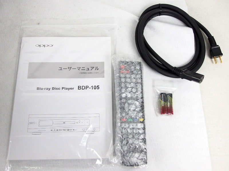 付属品:取扱説明書、リモコン、電源ケーブル、乾電池。