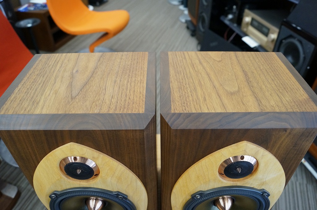 ハードメイプルとブラックウォールナットという最高クラスの天然木無垢材を使用したエンクロージャー。